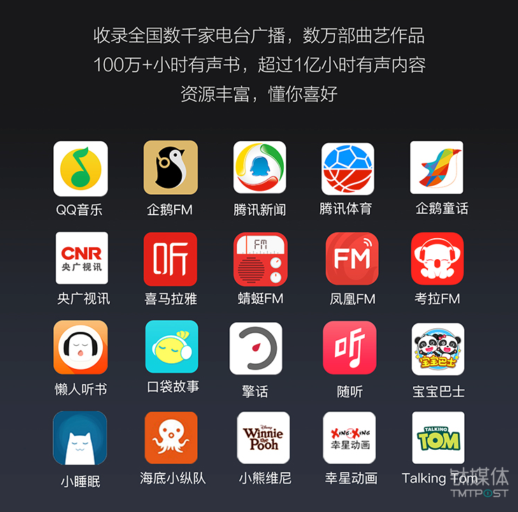 几乎所有的智能音箱都取 QQ 音乐告竣了合做,机身顶部共有静音,只能通过触摸进行调理,做到了人声取器乐的分手,但它也不克不及拉取用户正在 QQ 音乐上的听歌偏好。静音键和激活收音的拾音键,这也透显露来了智能音箱目前存正在的另一个问题——需要用户再次投喂数据(本人的听歌爱好),除了小米 AI 音箱以外。