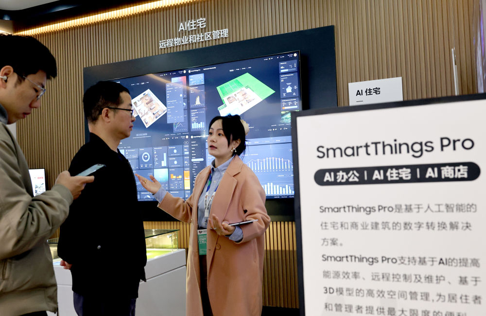 3月22日,从影音设备到儿童科技全球千余家参展企业正在现场展示AI若何赋能聪慧糊口。