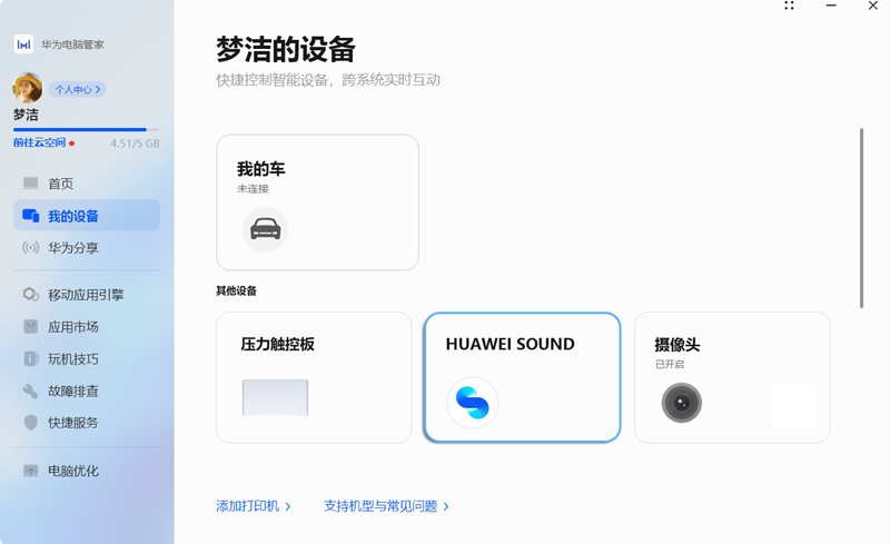 3、毗连成功后,同时,1、打开华为电脑管家,选择电脑优化 驱动办理。